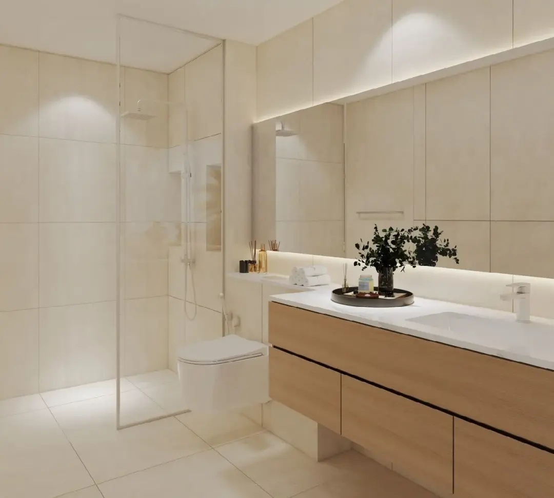 Interiors at Valencia are characterized by contemporary finishes and a refined Mediterranean aesthetic, with clean lines, soft color palettes, and high-quality materials used throughout. Apartments feature well-planned layouts with elegant flooring, modern wall finishes, and thoughtfully designed living spaces. Kitchens are delivered fully fitted with sleek cabinetry, stone countertops, and integrated appliances, while residences are offered semi-furnished, allowing residents to personalize their homes while benefiting from a polished, move-in-ready foundation.